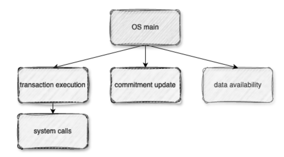 In Cairo, only statements of the form “a specific Cairo program with specific inputs and produced specific outputs” can be proven, which means that the statement “A Starknet block is valid” needs to expressed in the form of a Cairo program, inputs, and outputs. This is where SNOS comes in: it is a Cairo Zero program that verifies the validity of blocks by getting an initial state and a list of transactions as input and outputting the state that is the result of applying these transactions on the initial state. SNOS is the program required for updating Starknet’s state on Ethereum (up to some caveats). As such, is it also the final arbiter on what does it mean for a transaction to execute correctly. For example, while a malicious sequencer can deviate from theINVOKE