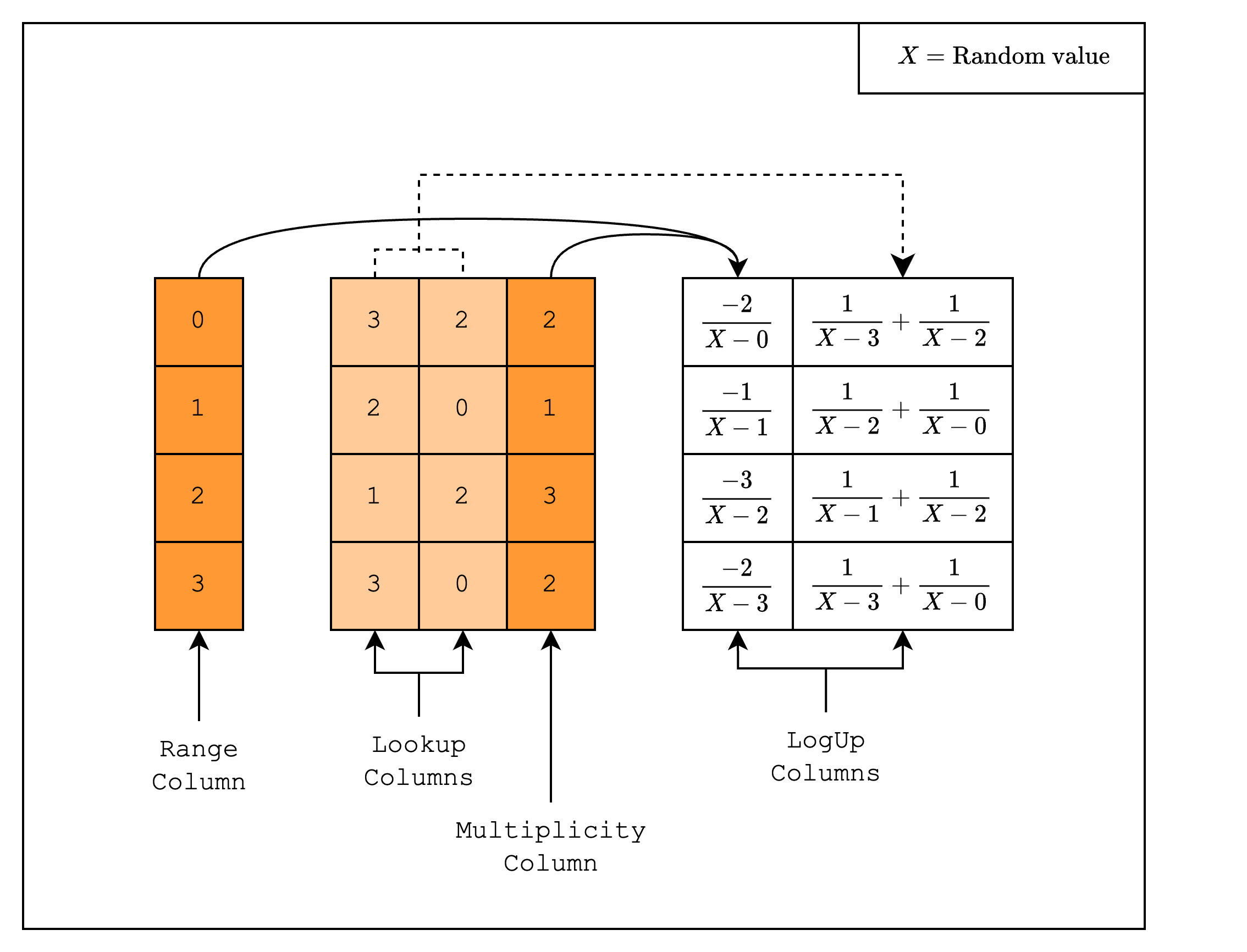 , which recreates the fractions that we added in the LogUp columns using values in the range-check, lookup, and multiplicity columns.